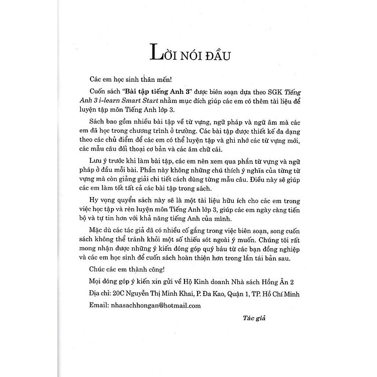 - Cuốn sách “Bài tập tiếng Anh 3” theo SGK Tiếng Anh 3 i-learn Smart Start.