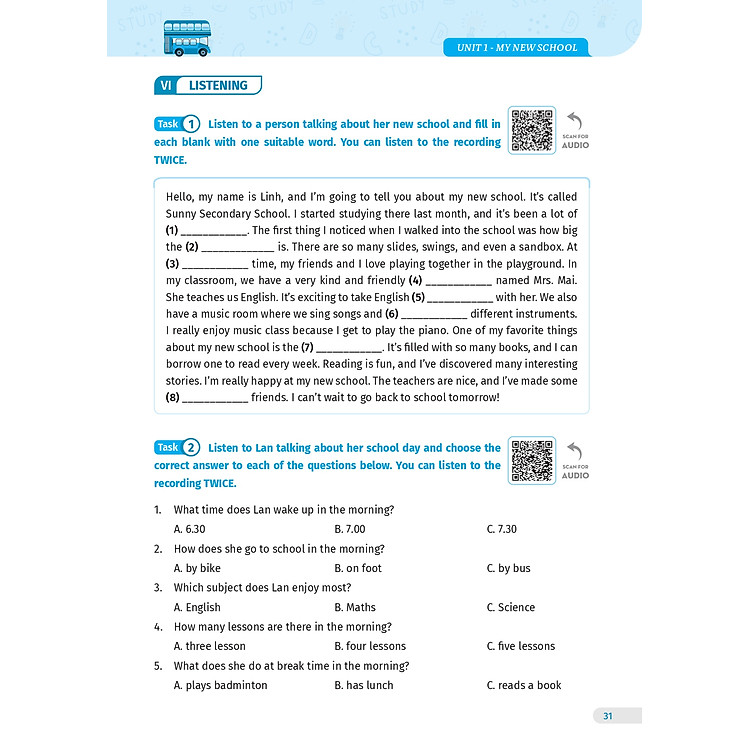 - Phần mềm hỗ trợ: Có mã QR cho việc học từ vựng và luyện nghe, nói theo từng đơn vị bài học.