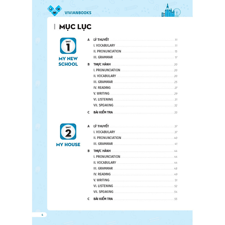 - Nội dung: Bao gồm lý thuyết từ vựng, ngữ pháp, phát âm và bài tập thực hành cho cả 4 kỹ năng: nghe, nói, đọc, viết.