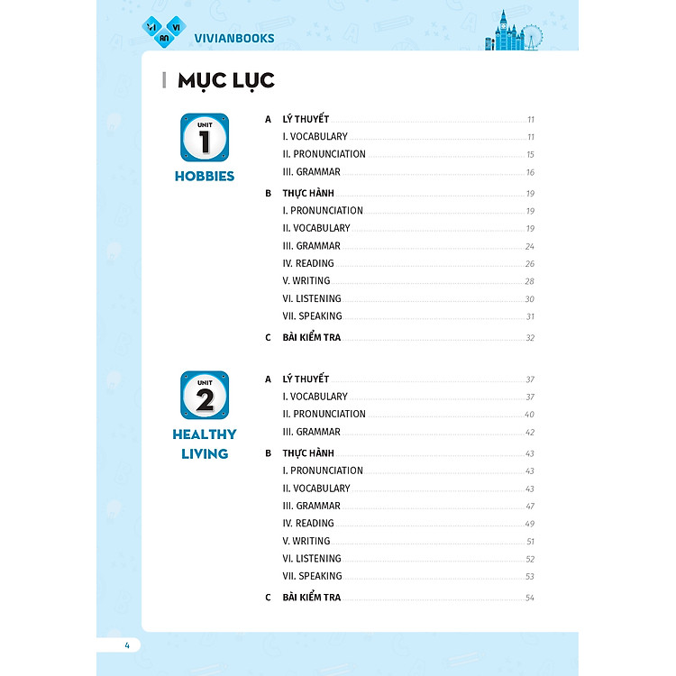 - Cấu trúc sách: Tổng hợp lý thuyết về từ vựng, ngữ pháp, phát âm; bài tập thực hành và bài kiểm tra.