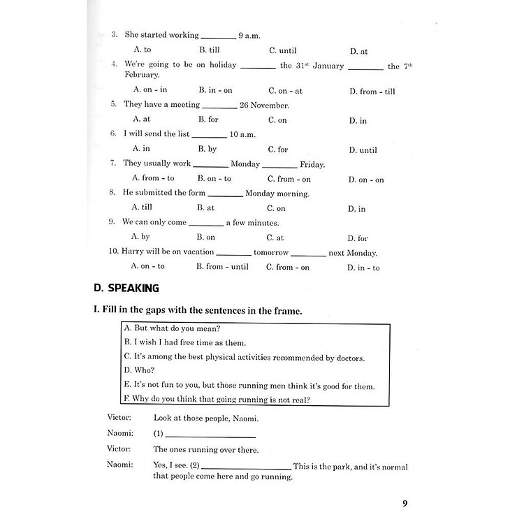 D. Speaking: Bao gồm các bài tập về kĩ năng nói