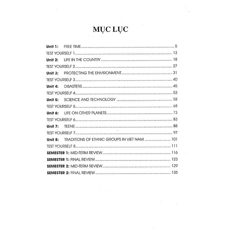Ngoài ra, còn có phần Tự kiểm tra (Test yourself) ở cuối mỗi đơn vị bải học và các phần ôn tập giữa kì và cuối kì. Các phần này sẽ giúp các em học sinh tự kiểm tra lại những nội dung kiến thức mà mình đã học để kịp thời củng có những kiến thức còn chưa nắm vững.
