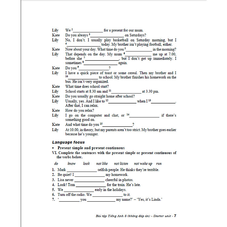 Các bài tập trong Bài tập Tiếng Anh 8 – Không đáp án đa dạng, phong phú, bám sát từ vựng, ngữ pháp và chủ đề trong sách giáo khoa tiếng Anh theo chương trình mới.