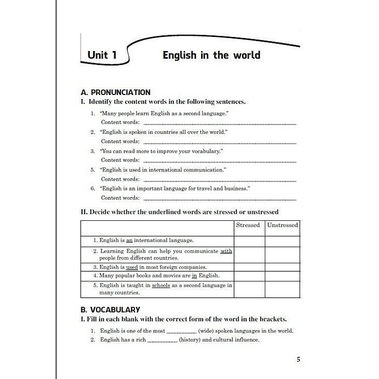 Mỗi phần trong sách được chia thành các mục rõ ràng như phát âm, từ vựng, ngữ pháp, nói, đọc và viết, điều này giúp học sinh dễ dàng theo dõi và học tập. Các bài tập đa dạng và phong phú, không chỉ giúp các em rèn luyện kỹ năng ngôn ngữ mà còn mở rộng vốn từ vựng rất nhiều.