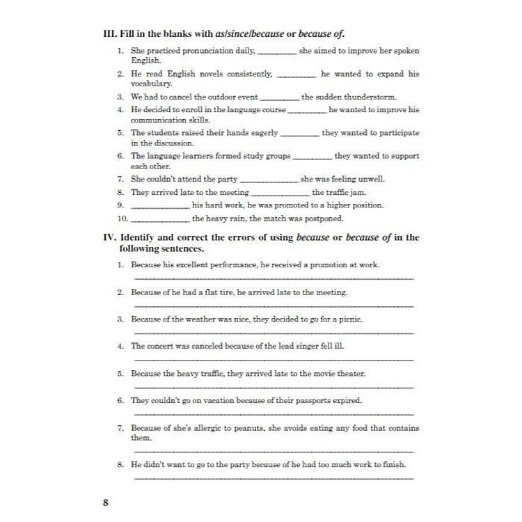 - Chia thành các phần: Pronunciation, Vocabulary, Grammar, Speaking, Reading, Writing.