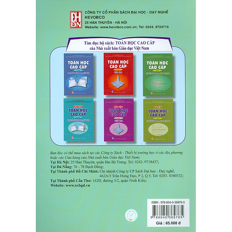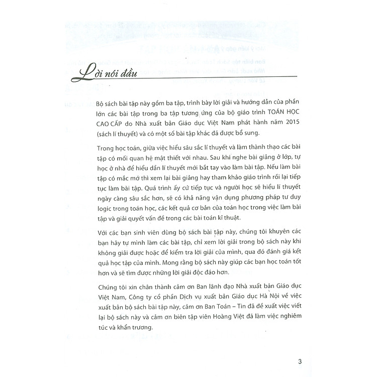 Bài Tập Toán Học Cao Cấp không chỉ phù hợp cho sinh viên đại học mà còn rất hữu ích cho học sinh trung học phổ thông muốn chuẩn bị kiến thức vững chắc cho kỳ thi vào đại học. Ngoài ra, cuốn sách cũng là tài liệu tham khảo quý giá cho các giảng viên trong việc giảng dạy và hướng dẫn sinh viên. Được thiết kế với hình thức bắt mắt và chất lượng giấy tốt, sản phẩm này sẽ là một điểm nhấn trong bộ sưu tập sách toán học của bạn.
