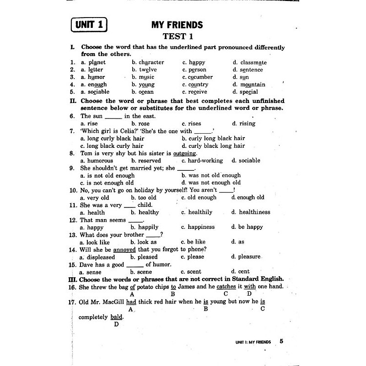 - Kiểm tra tự đánh giá: Sau 3 đơn vị bài học có bài tự kiểm tra (Test Yourself) gồm 25 câu.