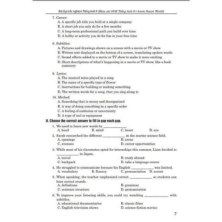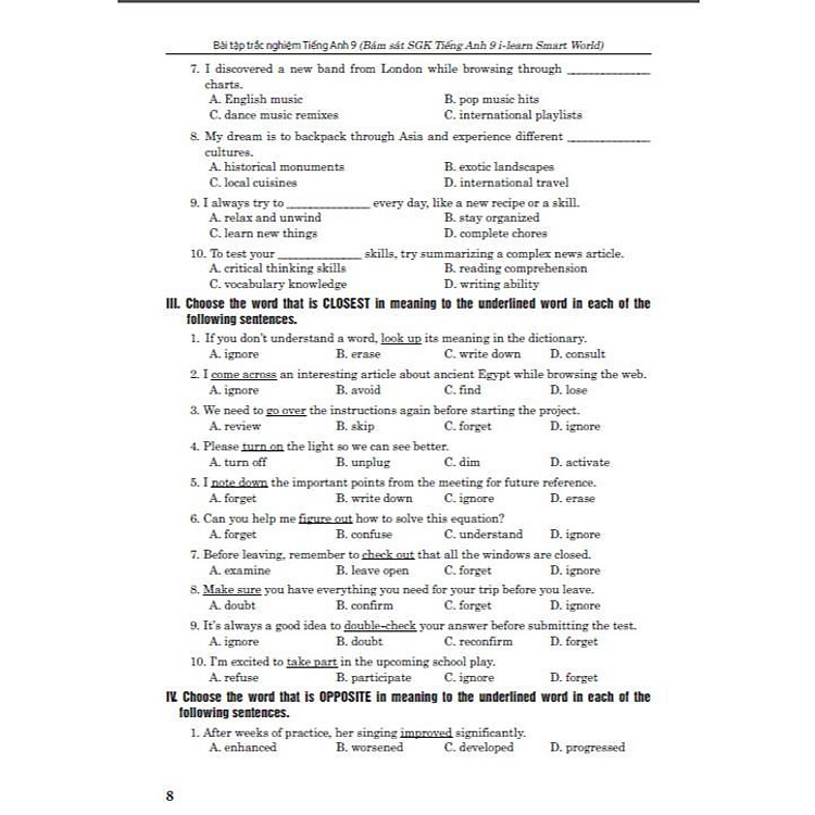 Bài Tập Trắc Nghiệm Tiếng Anh Lớp 9 – Bám Sát SGK I-Learn Smart World