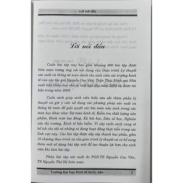 Cuốn sách “Bài Tập Xác Suất & Thống Kê Toán” được biên soạn bởi các tác giả uy tín: PGS.TS. Nguyễn Văn Cao, TS. Trần Thái Ninh và TS. Nguyễn Thế Hệ. Đây là một trong những tài liệu quan trọng dành cho sinh viên và những ai quan tâm đến lĩnh vực kinh tế, mang đến cái nhìn sâu sắc và toàn diện về xác suất và thống kê trong toán học. Sản phẩm được phát hành bởi Nhà xuất bản Đại học Kinh tế Quốc dân, đảm bảo chất lượng nội dung và sự chính xác trong kiến thức.