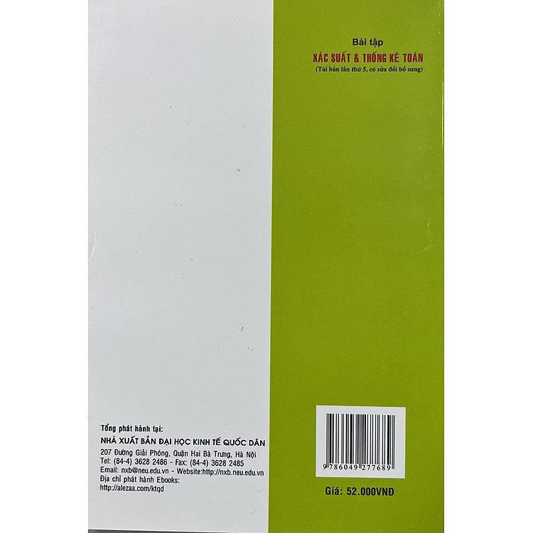 Các thông tin khác: Bài Tập Xác Suất & Thống Kê Toán (Tái Bản Lần Thứ 5, Có Sửa Chữa Bổ Sung)