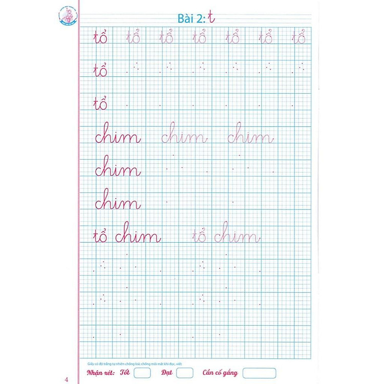 - Bài tập viết được sắp xếp khoa học theo nhóm chữ, từ nét cơ bản đến chữ ghép.
