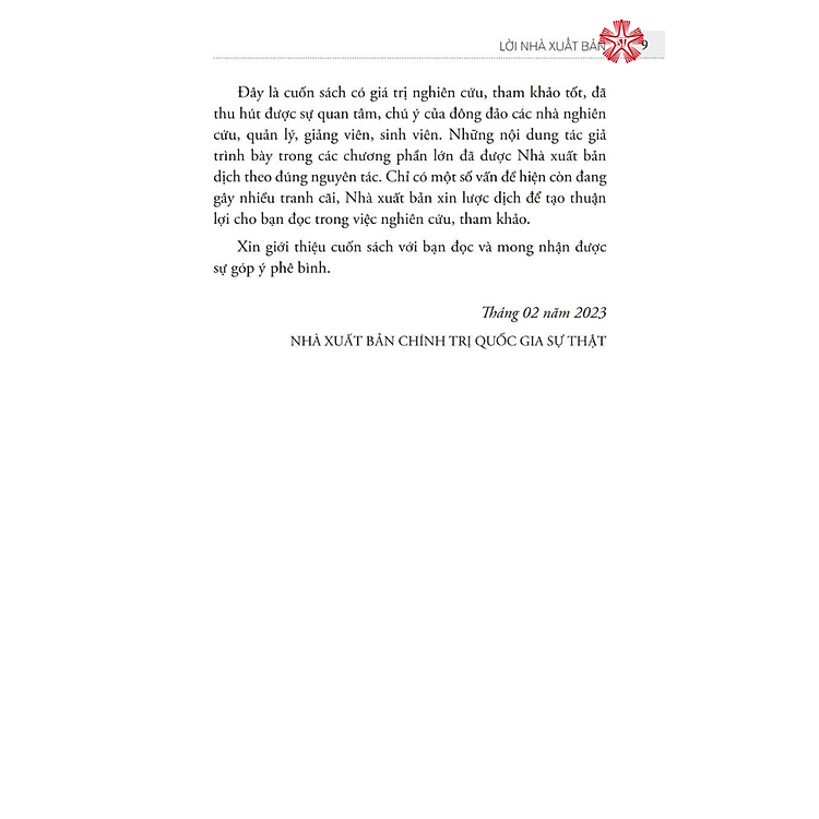- Xuất bản bởi Nhà Xuất Bản Chính Trị Quốc Gia Sự Thật, với định dạng bìa mềm.