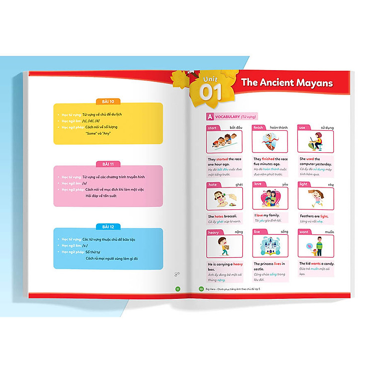 - Mỗi cuốn bao gồm 12 chủ đề thân thuộc, kết hợp kiến thức và bài tập tiếng Anh.
