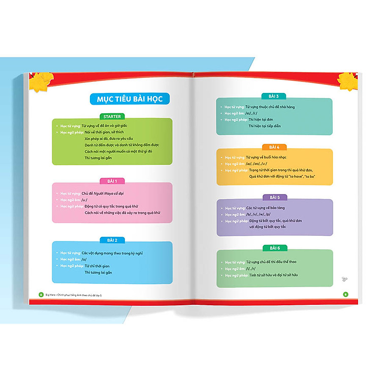 Mỗi cuốn Big Hero – Chinh phục tiếng anh theo chủ đề gồm 12 chủ đề thân thuộc với các em. Lồng ghép trong mỗi chủ đề chính là các kiến thức và bài tập tiếng Anh, mỗi bài học gồm rất nhiều phần chi tiết cho các em học sinh học và ôn tập.