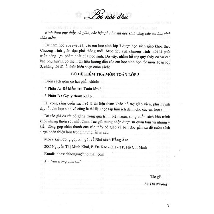 - Gồm hai phần: Đề kiểm tra Toán lớp 3 và Gợi ý tham khảo.