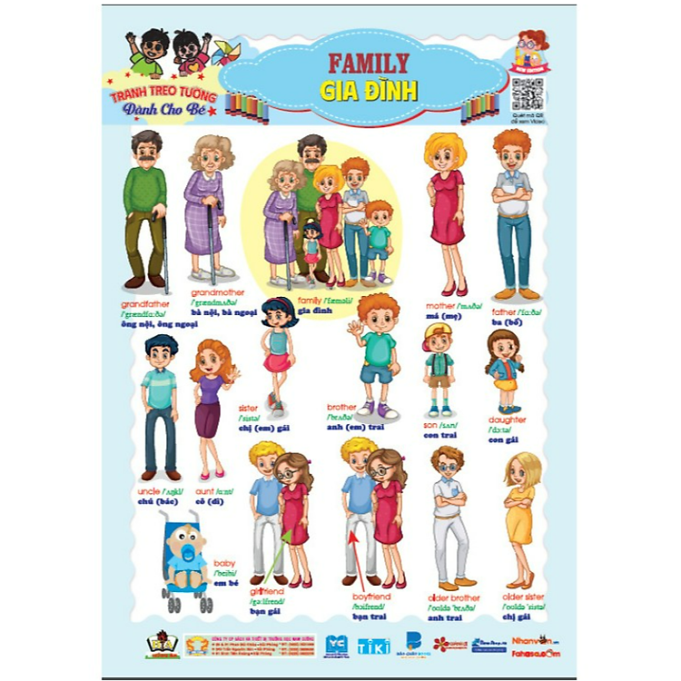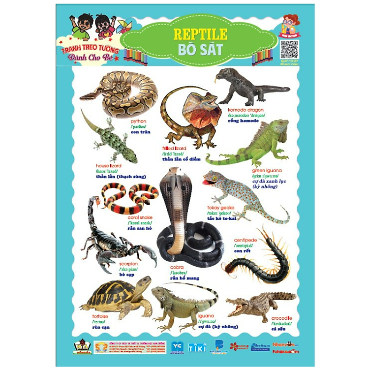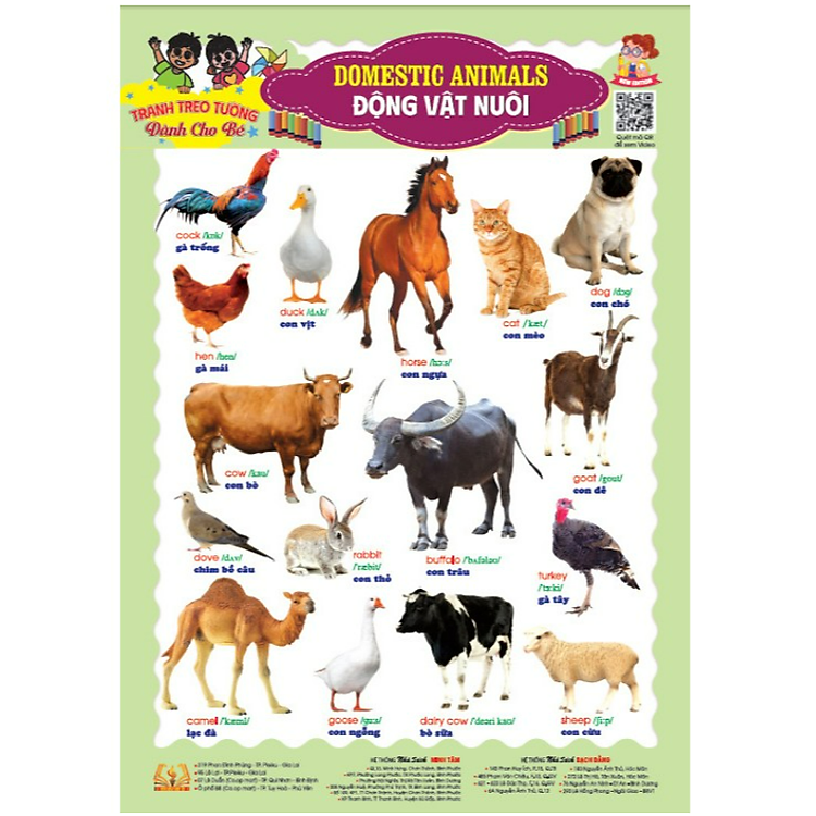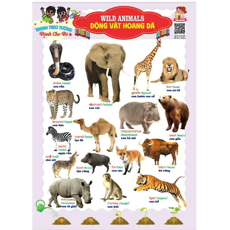 - Bộ tranh treo tường song ngữ cho trẻ em, bao gồm tiếng Việt và tiếng Anh với phiên âm chuẩn Oxford.
