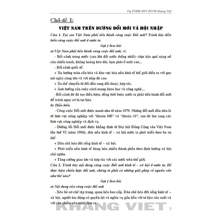 Chủ đề 1: Việt Nam trên đường đổi mới và hội nhập.