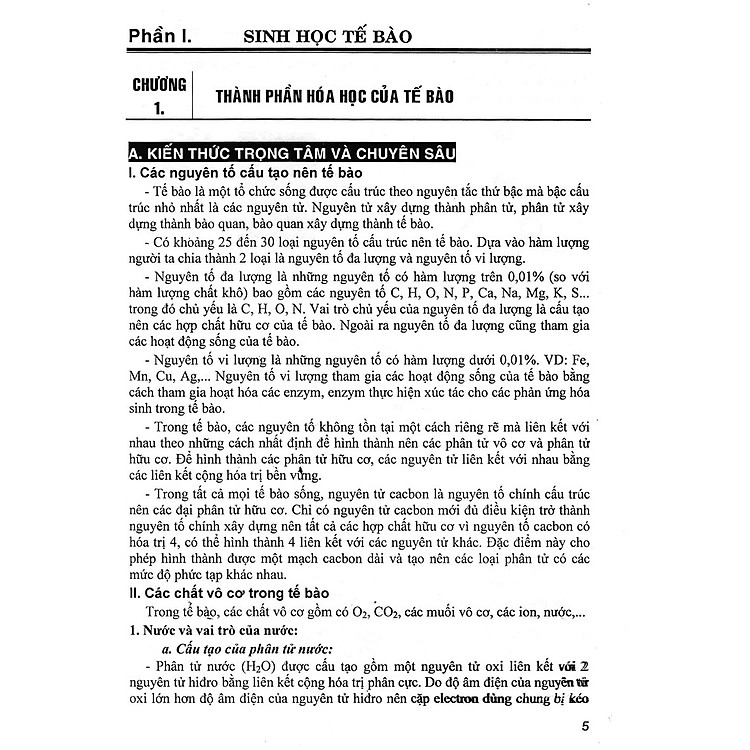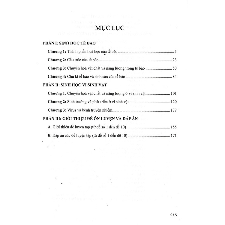 - Phần Sinh học tế bào gồm 4 chương, trong khi phần Sinh học vi sinh vật có 3 chương tương ứng với sách giáo khoa.
