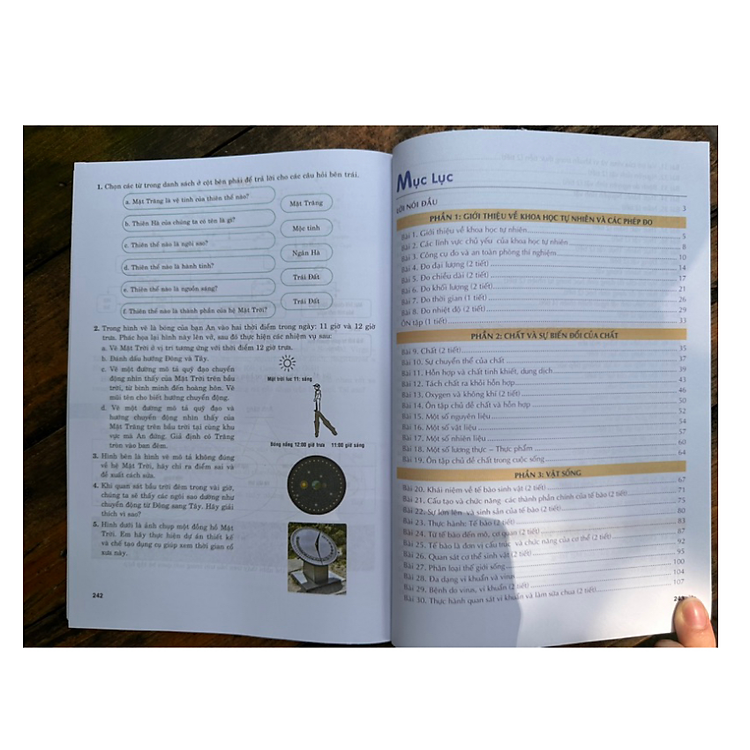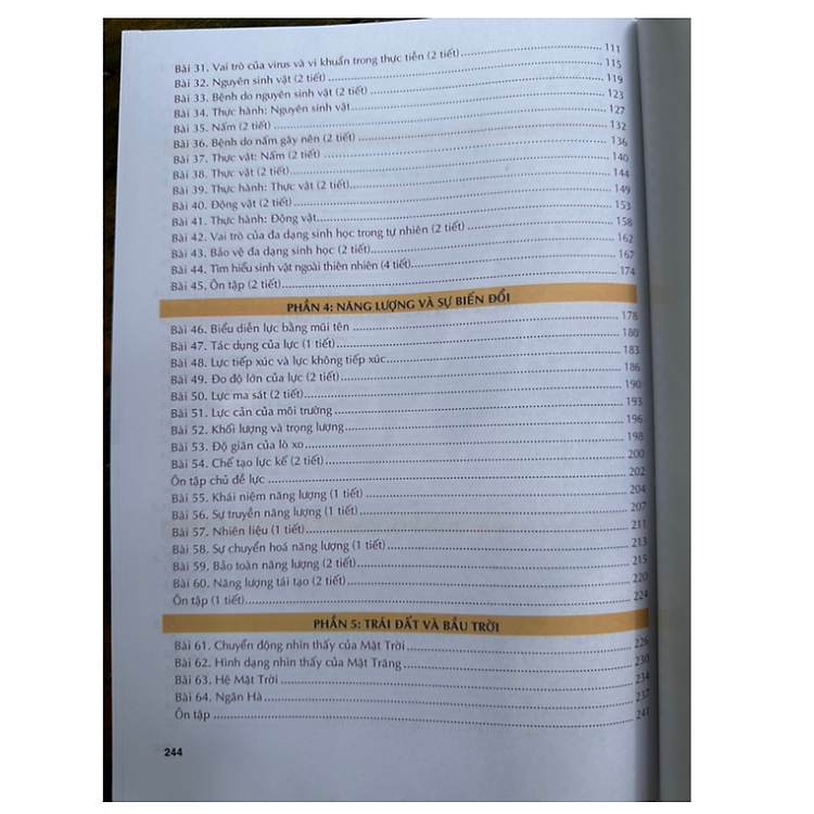 - Gồm 5 phần: Giới thiệu khoa học tự nhiên, chất và sự biến đổi, vật sống, năng lượng và sự biến đổi, trái đất và bầu trời.