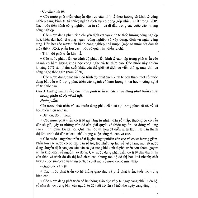 Một số vấn đề về kinh tế – xã hội thế giới: Trong phần này có các vấn đề về sự khác biệt về trình độ phát triển kinh tế – xã hội của các nhóm nước; toàn cầu hoá, khu vực hoá kinh tế; một số tổ chức khu vực và quốc tế; một số vấn đề an ninh toàn cầu; nền kinh tế tri thức.