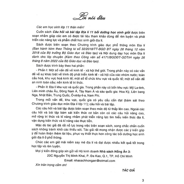 - Cuốn sách “Câu Hỏi Và Bài Tập Bồi Dưỡng Học Sinh Giỏi Địa Lí 11” dành cho học sinh lớp 11, giúp phát triển năng lực địa lí.