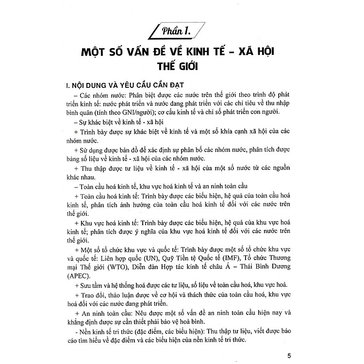- Nội dung sách chia thành hai phần: kinh tế – xã hội thế giới và địa lí khu vực, quốc gia.
