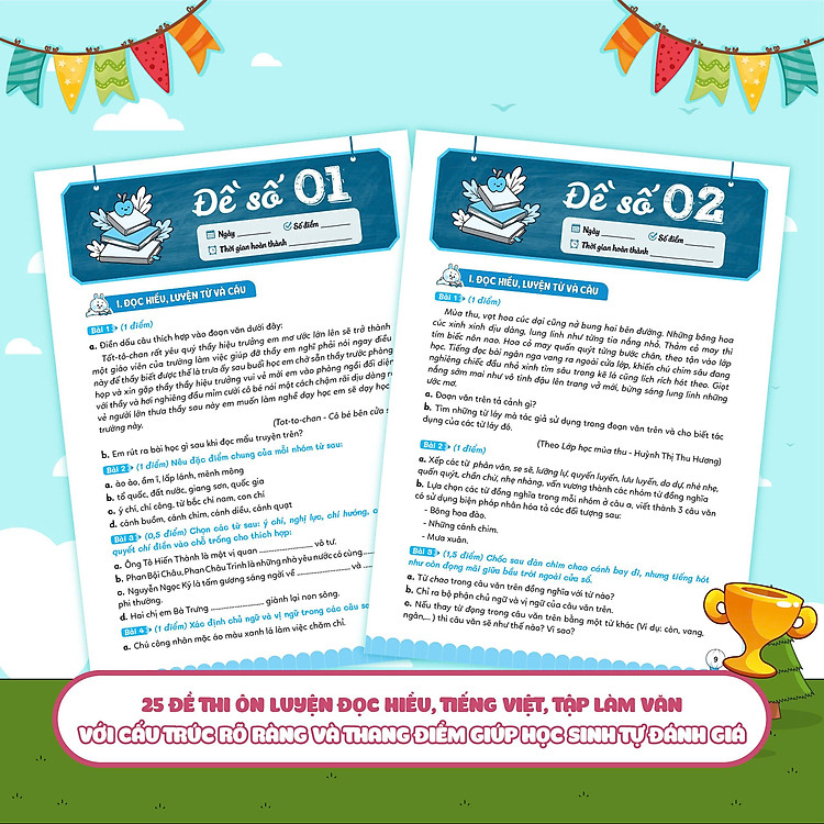1. Tổng ôn 25 đề then chốt môn Tiếng Việt. Việc luyện tập nhuần nhuyễn giúp các con phản xạ bài tập nhanh, có tư duy phân tích đề, phân bổ thời gian hợp lý và vận dụng thành thạo khi làm bài thi thật