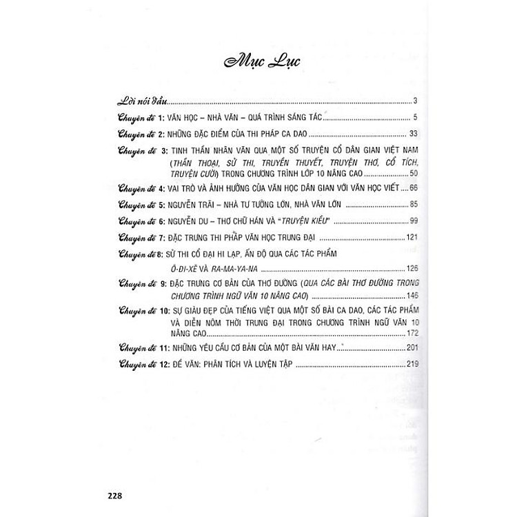 - Gồm 12 chuyên đề về ngữ văn lớp 10, bao gồm văn học, thi pháp, và ảnh hưởng của văn học dân gian.
