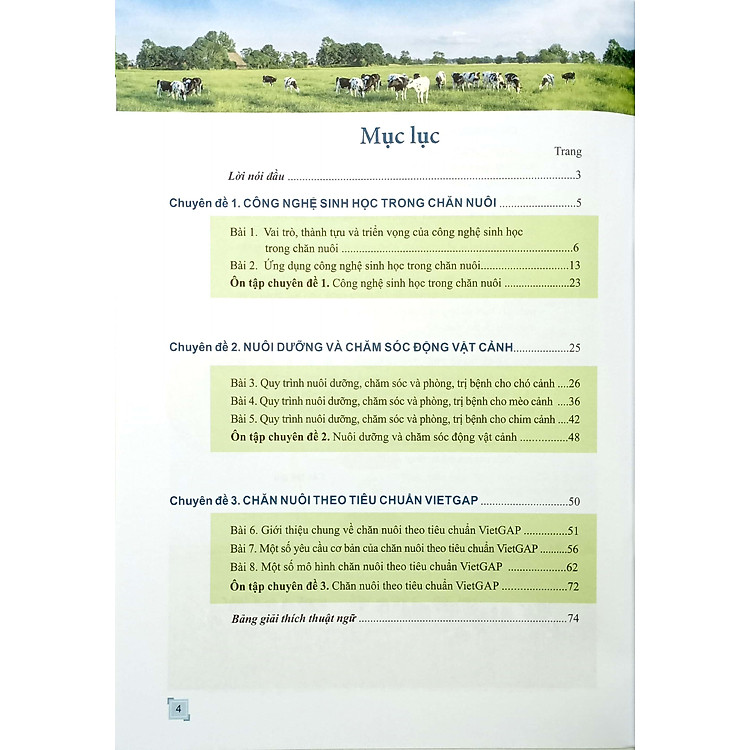 Sách được chia thành nhiều chương, mỗi chương tập trung vào một khía cạnh cụ thể của công nghệ chăn nuôi. Từ những kiến thức cơ bản về vật nuôi, thức ăn cho đến các kỹ thuật chăm sóc và phòng bệnh, tất cả đều được trình bày rõ ràng, dễ hiểu. Bên cạnh đó, sách còn có các bài tập thực hành, giúp học sinh vận dụng kiến thức vào thực tiễn, từ đó nâng cao khả năng tư duy và giải quyết vấn đề.