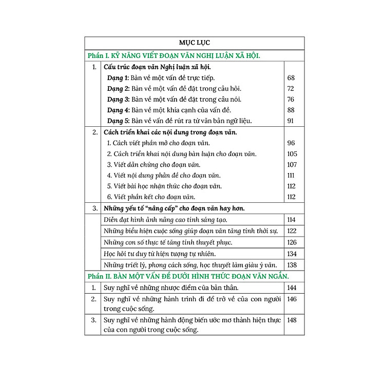 - Cấu trúc đoạn văn: Phân tích 5 dạng viết đoạn văn nghị luận xã hội khác nhau.