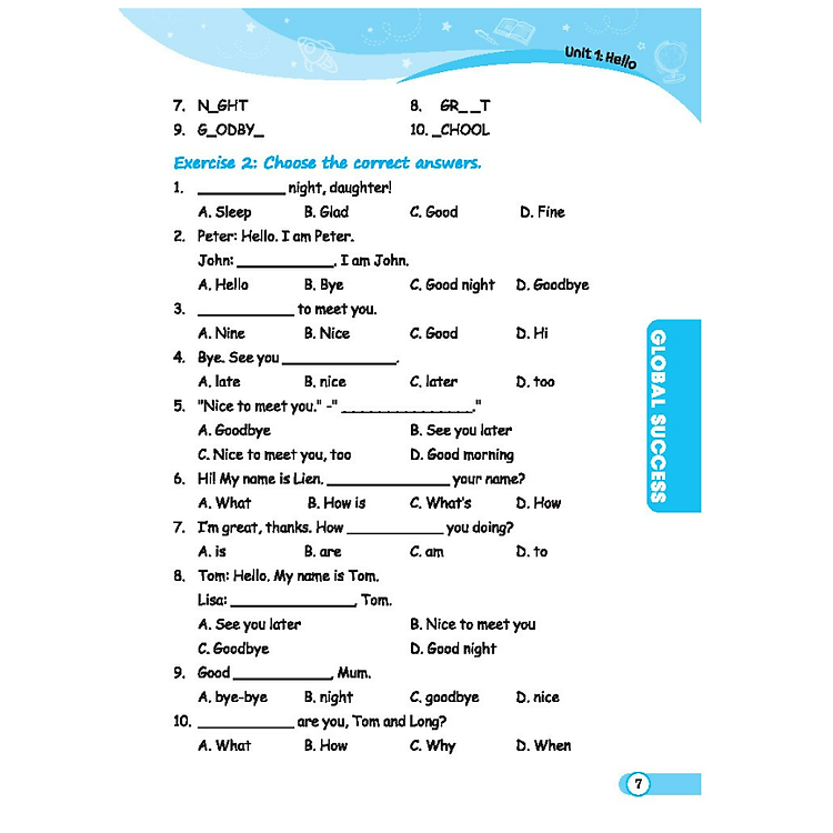 Ngoài ra, việc sử dụng bộ đề kiểm tra Global Success còn giúp phụ huynh có thể theo dõi sự tiến bộ của con em mình qua từng bài kiểm tra. Qua đó, tạo điều kiện cho việc hỗ trợ học tập một cách hiệu quả và kịp thời. Với sự kết hợp giữa lý thuyết và thực hành, bộ đề này chắc chắn sẽ là một trong những người bạn đồng hành đáng tin cậy trong hành trình học tiếng Anh của các em học sinh lớp 3.