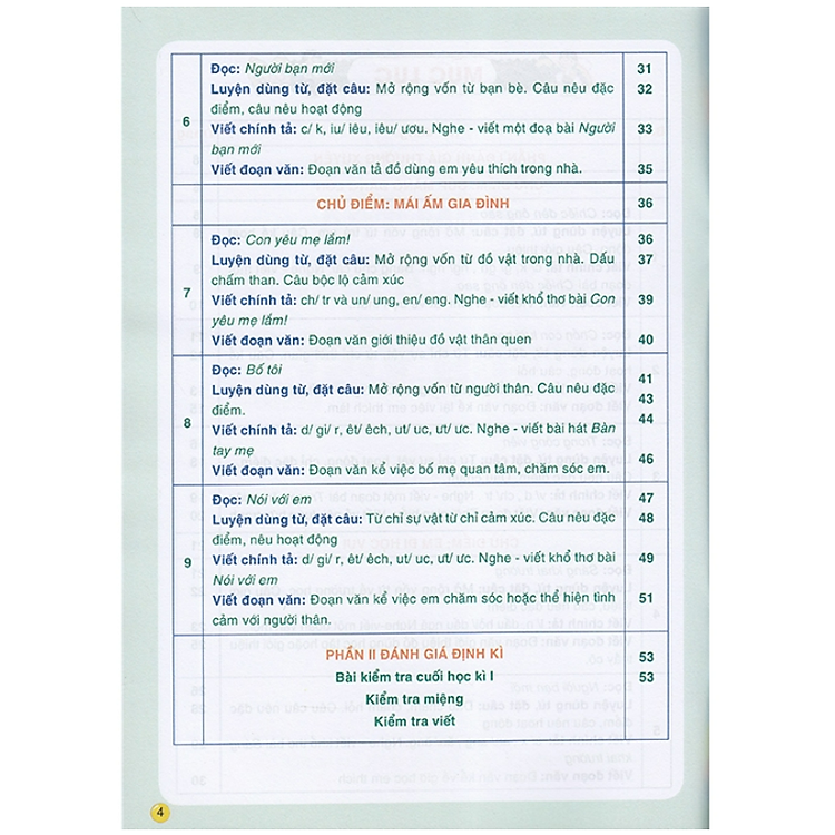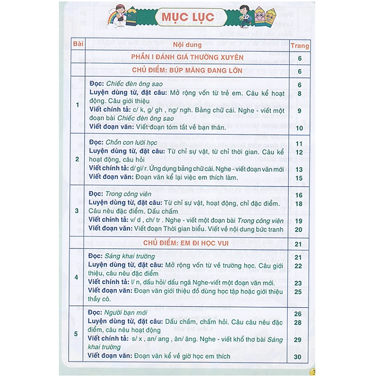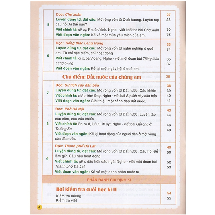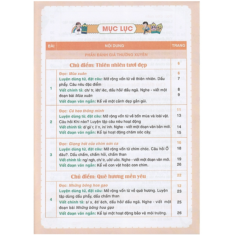 - Bao gồm các bài luyện tập, đánh giá thường xuyên và định kỳ về đọc, viết chính tả và đặt câu.