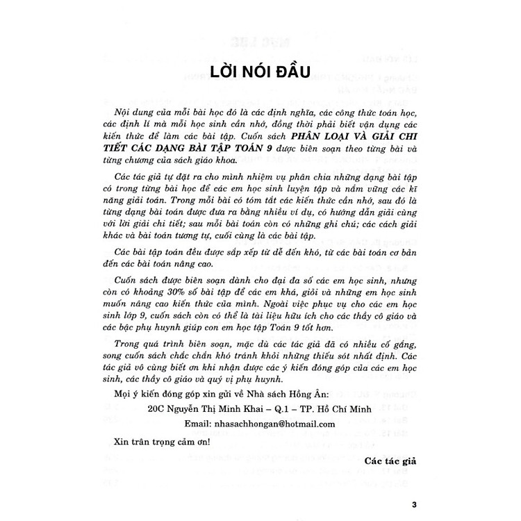 - Nội dung sách phân loại và giải chi tiết các dạng bài tập Toán lớp 9.