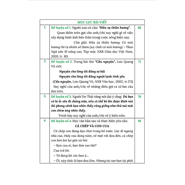 Sách cung cấp 150 bài viết hoàn chỉnh với các đề tài đa dạng, giúp học sinh có cái nhìn sâu sắc hơn về cách triển khai một bài văn nghị luận. Các bài viết được phân loại theo độ dài từ 400 đến 800 chữ, phù hợp với cấu trúc đề thi mới. Điều này giúp học sinh dễ dàng làm quen với các dạng đề thi khác nhau.