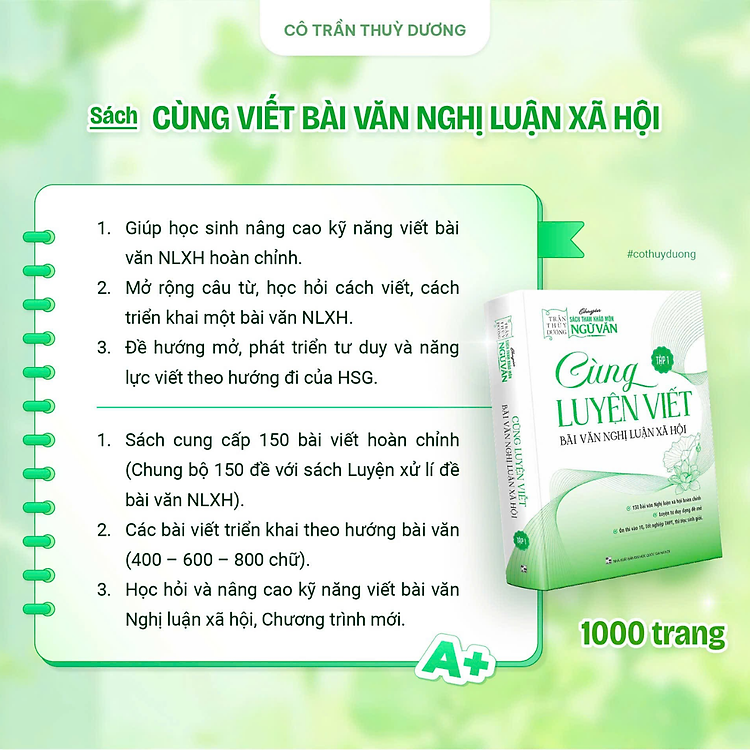 Cuốn sách “Cùng Luyện Viết Bài Văn Nghị Luận Xã Hội (Tập 1)” của cô Trần Thùy Dương là một tài liệu hữu ích cho học sinh trong việc nâng cao kỹ năng viết văn nghị luận xã hội. Với nội dung phong phú và cách trình bày logic, sách thực sự đã đáp ứng được nhu cầu học tập của nhiều bạn trẻ.