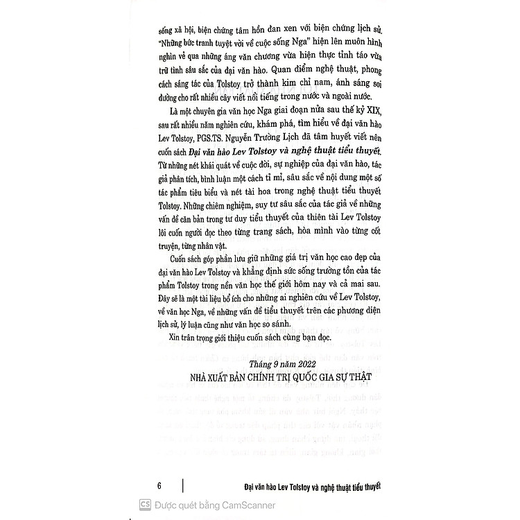 Cuốn sách góp phần lưu giữ những giá trị văn học cao đẹp của đại văn hào Lev Tolstoy và khẳng định sức sống trường tồn của tác phẩm Tolstoy trong nền văn học thế giới hôm nay và cả mai sau. Đây sẽ là một tài liệu bổ ích cho những ai nghiên cứu về Lev Tolstoy, về văn học Nga, về những vấn đề tiểu thuyết trên các phương diện lịch sử, lý luận cũng như văn học so sánh.Giá sản phẩm trên Tiki đã bao gồm thuế theo luật hiện hành. Bên cạnh đó, tuỳ vào loại sản phẩm, hình thức và địa chỉ giao hàng mà có thể phát sinh thêm chi phí khác như phí vận chuyển, phụ phí hàng cồng kềnh, thuế nhập khẩu (đối với đơn hàng giao từ nước ngoài có giá trị trên 1 triệu đồng)…..