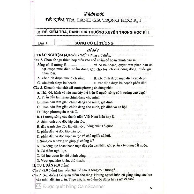 -C: Đề kiểm tra, đánh giá cuối học kỳ 1