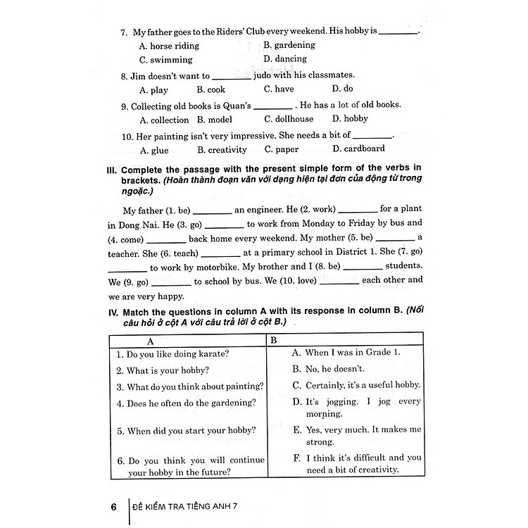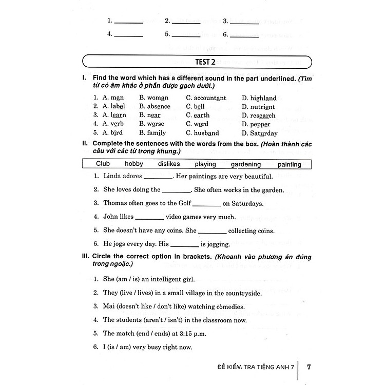 Các thông tin khác: Đề Kiểm Tra Tiếng Anh 7