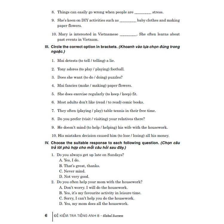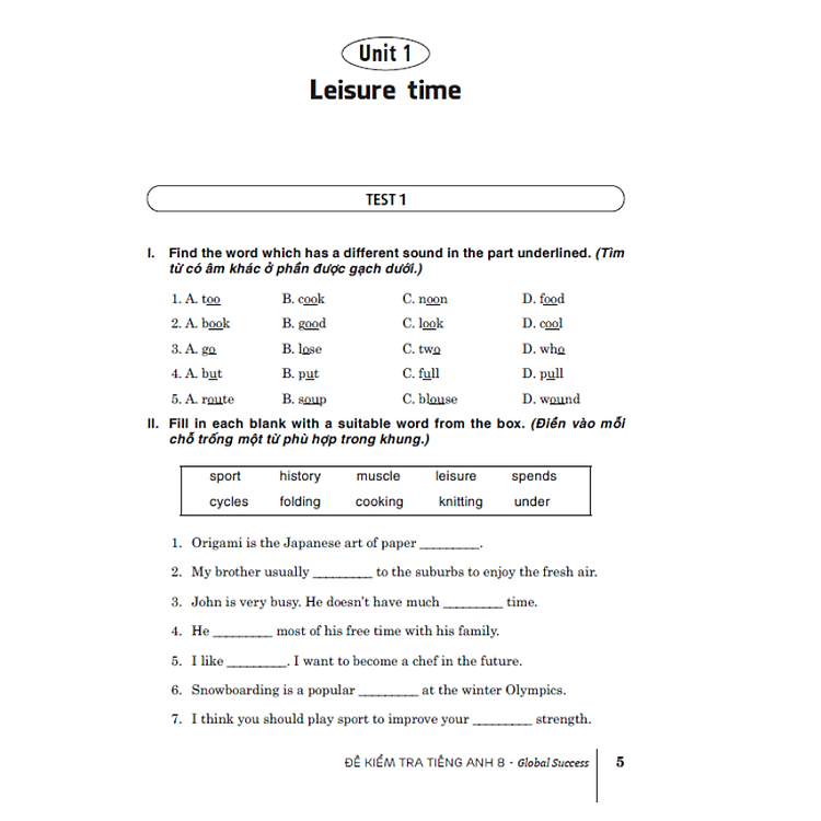 - Cuốn sách “Đề kiểm tra tiếng Anh 8” hỗ trợ học sinh ôn tập và nâng cao kỹ năng tiếng Anh.