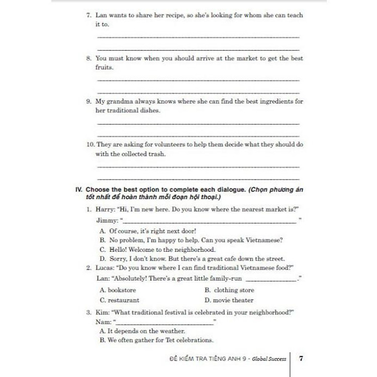 Thông tin Đề kiểm tra tiếng anh 9 (dùng kèm sgk kết nối)