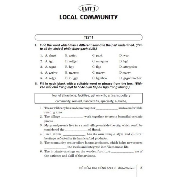 - Bao gồm nhiều đề kiểm tra với các dạng khác nhau, tập trung vào Ngữ âm, Từ vựng và Ngữ pháp.