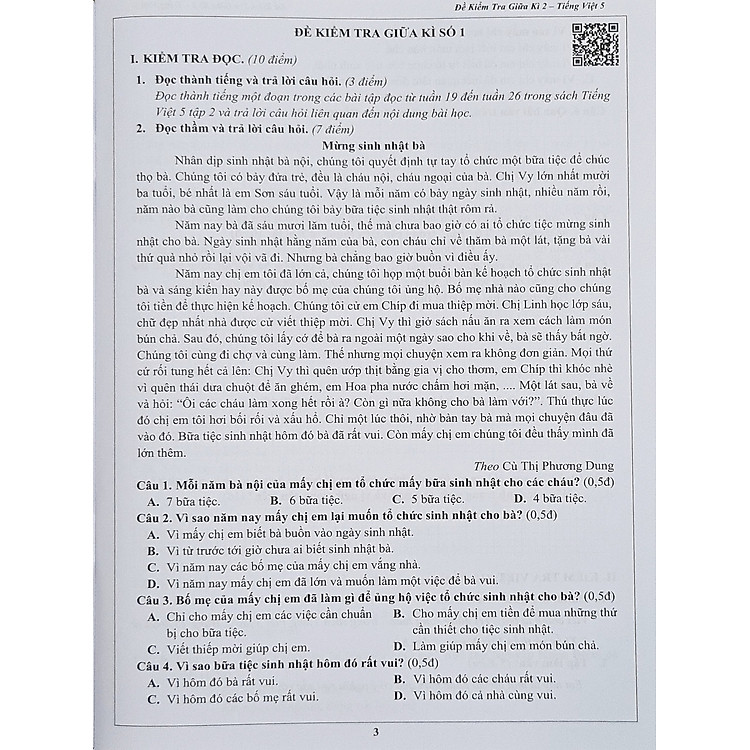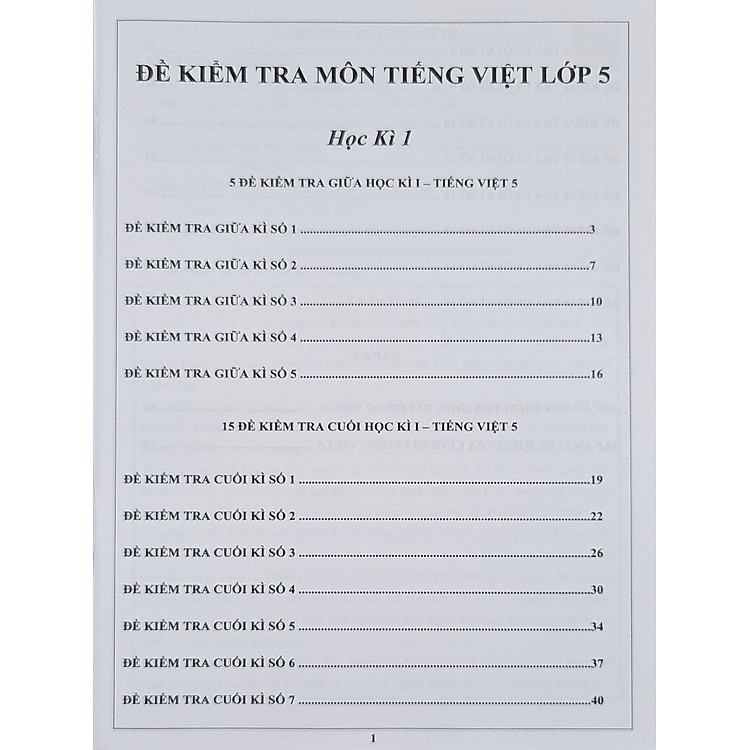 GIỚI THIỆU SÁCHĐề kiểm tra Tiếng Việt lớp 5 ( học kì 1) Dạng bài tập bám sát cấu trúc để thi giúp học sinh ôn tập và rèn luyện để tự tin khi bước vào kì thi. Dòng kẻ ô ly giúp học sinh viết và làm bài thuận tiện. Hỗ trợ phụ huynh tham gia nhóm để giải đáp thắc mắc về bài tậpGiá sản phẩm trên Tiki đã bao gồm thuế theo luật hiện hành. Bên cạnh đó, tuỳ vào loại sản phẩm, hình thức và địa chỉ giao hàng mà có thể phát sinh thêm chi phí khác như phí vận chuyển, phụ phí hàng cồng kềnh, thuế nhập khẩu (đối với đơn hàng giao từ nước ngoài có giá trị trên 1 triệu đồng)…..