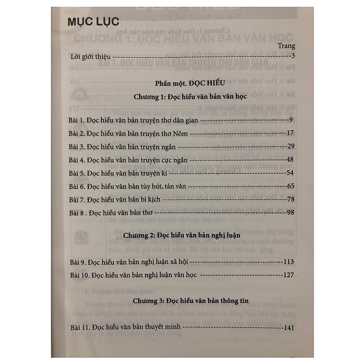 - Các chương bao gồm: văn bản văn học, văn bản nghị luận, và văn bản thông tin.