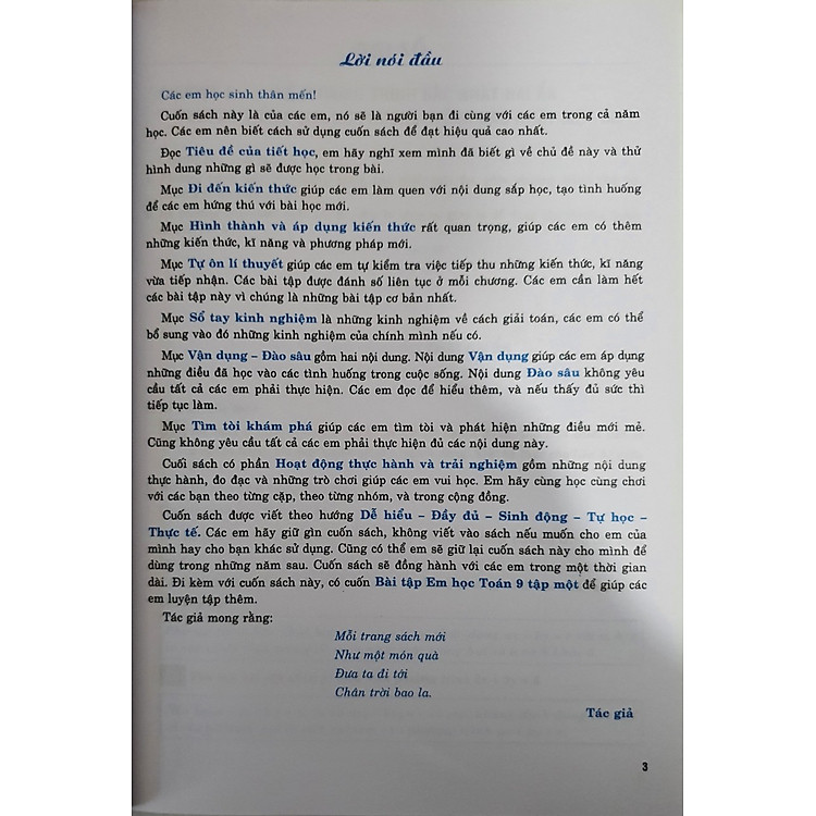- Khuyến nghị: Nên sử dụng kèm với hai quyển Bài tập Em Học Toán 9 để luyện tập kỹ năng giải toán.