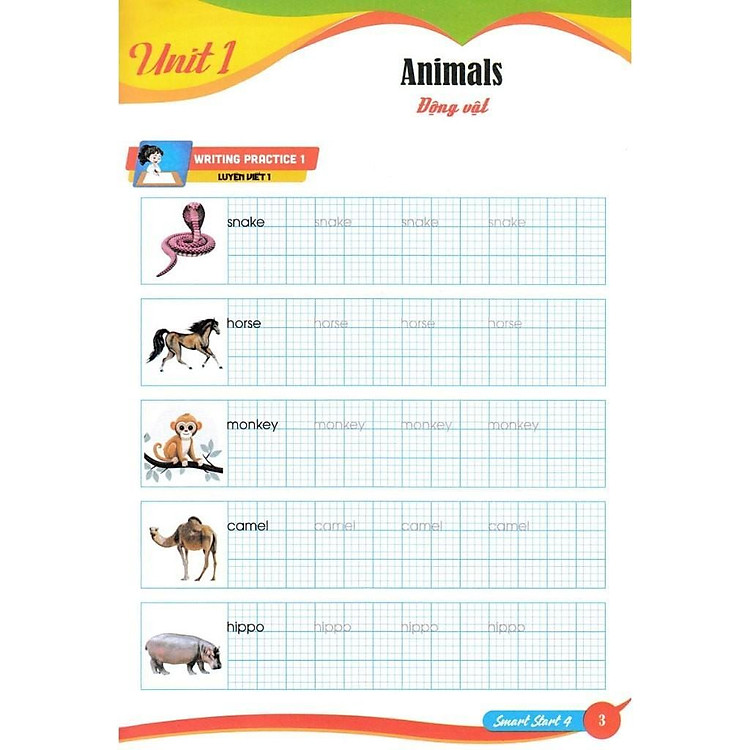 - Phát Triển Kỹ Năng Viết: Phần Writing Practice không chỉ giúp ghi nhớ từ vựng mà còn rèn luyện kỹ năng viết chữ đẹp cho các em.