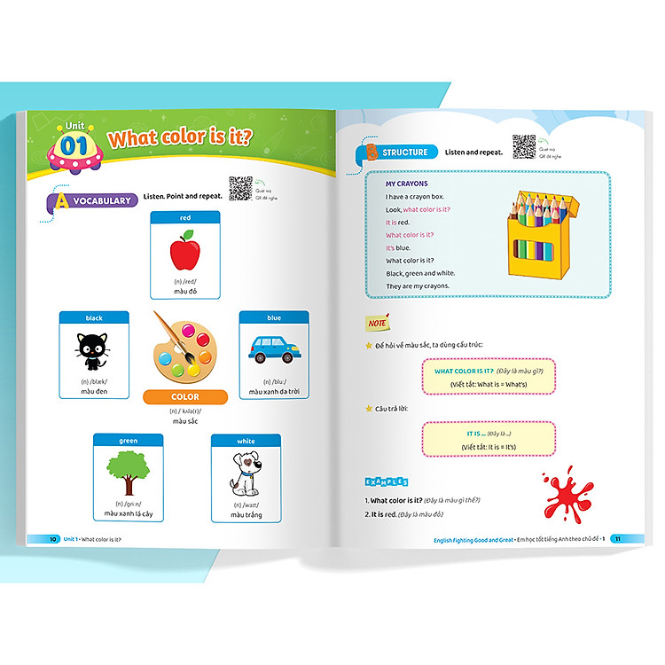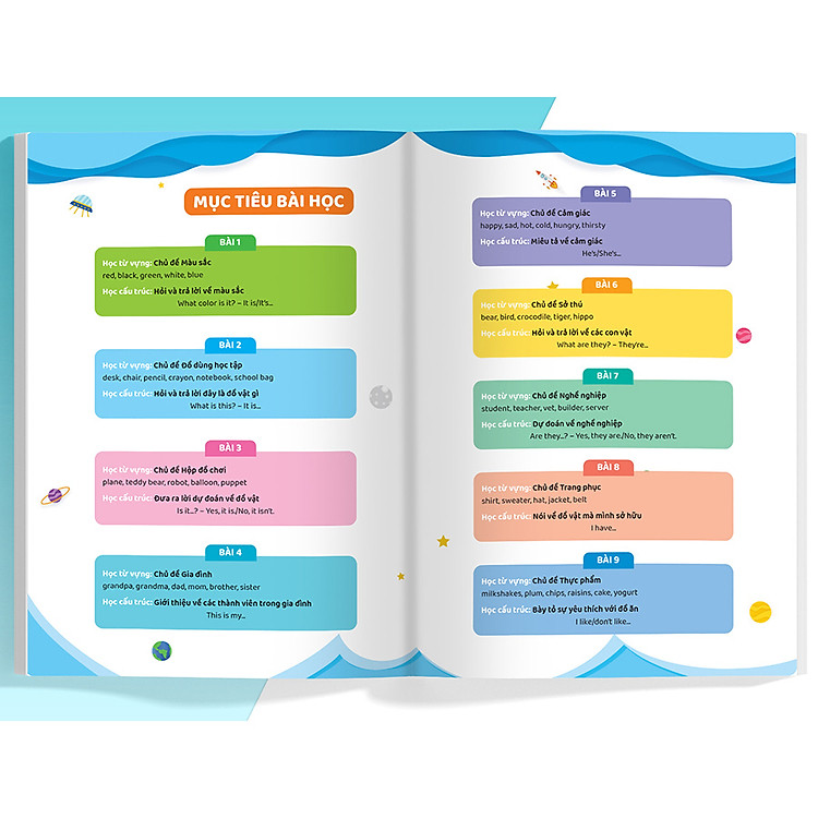 • Các em được học từ vựng theo chủ đề qua hình ảnh sinh động, làm quen ngữ pháp qua bài đọc và các cấu trúc câu.