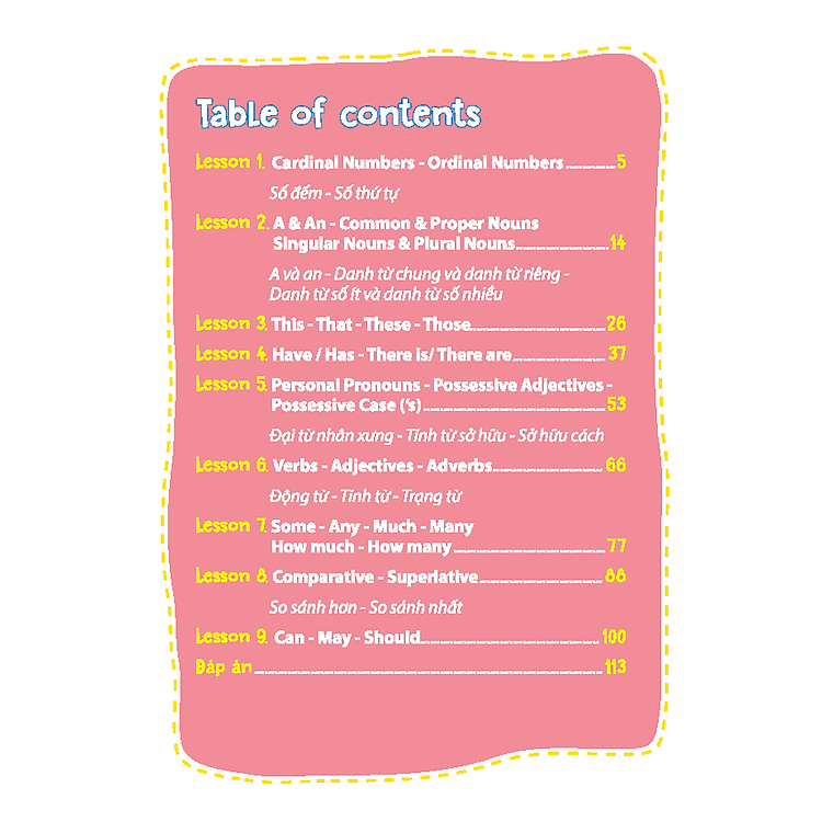 Bộ sách “English Grammar” được các tác giả biên soạn gồm các cấp độ từ cơ bản đến nâng cao, phù hợp cho học sinh từ 6-15 tuổi. Đây là cuốn sách ngữ pháp chuyên sâu giúp cha mẹ đồng hành cùng các con chinh phục các chứng chỉ quốc tế. *Ưu điểm của bộ sách: