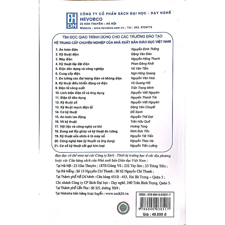 Hãy đến ngay Cửa hàng Sách HEVOBOOKS để sở hữu quyển giáo trình Cung cấp điện, một công cụ học tập không thể thiếu cho những ai đang theo đuổi ngành nghề này!