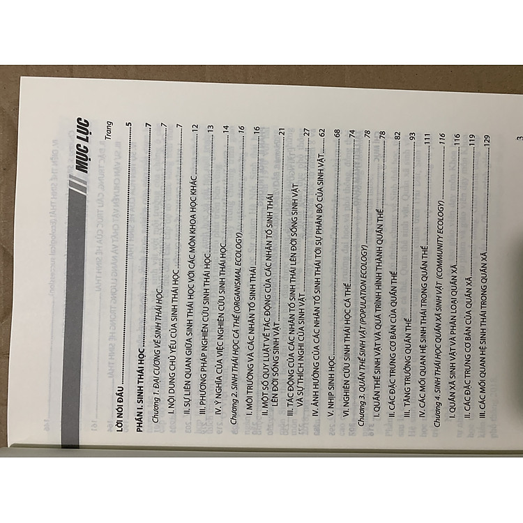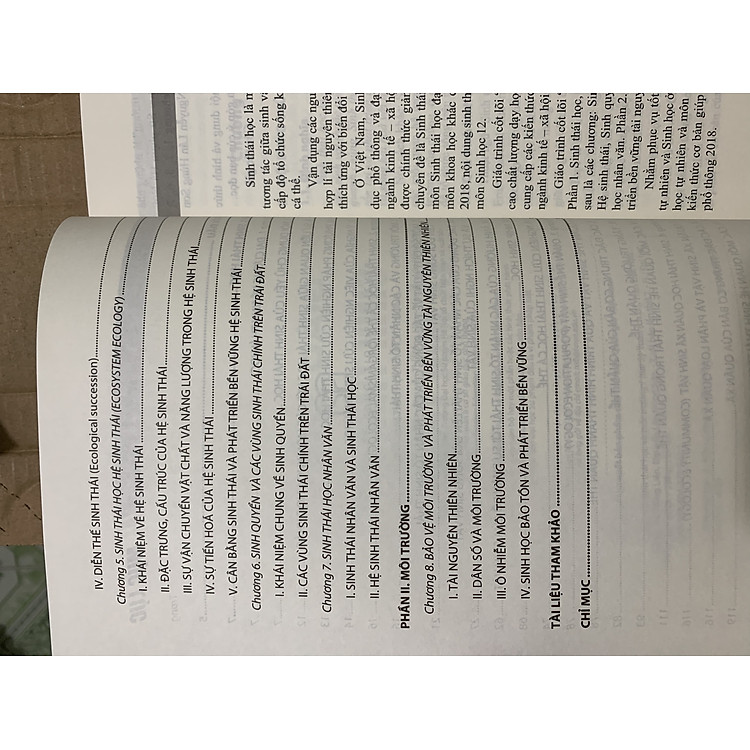 Giáo trình được chia thành nhiều phần, bắt đầu với Phần I: Sinh thái học, bao gồm các chương chi tiết như sau: