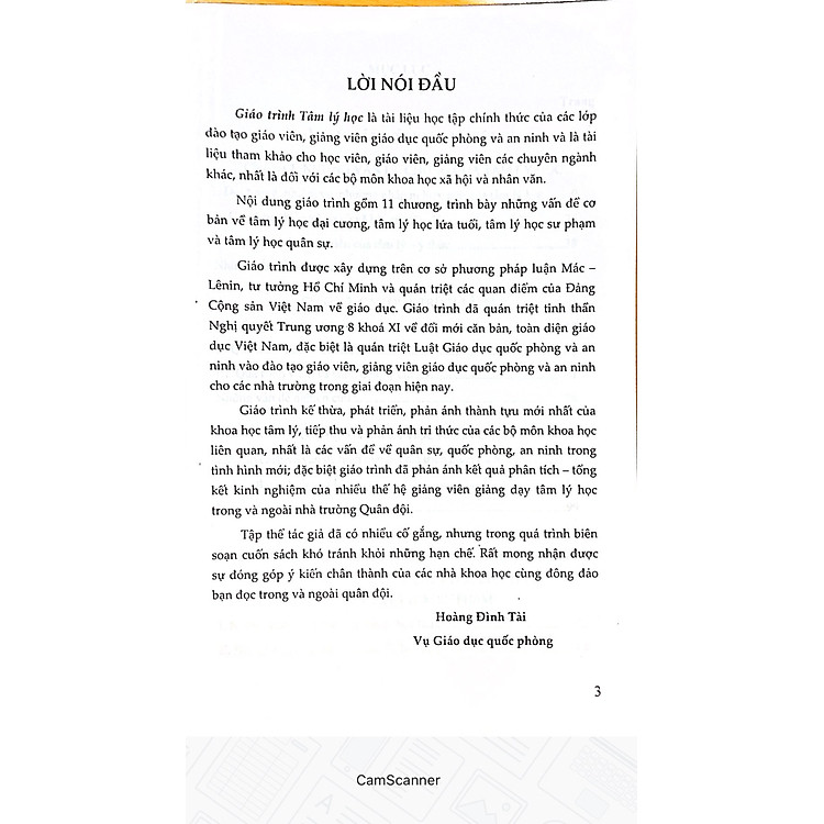 Giáo trình Tâm lý học là một trong những tài liệu học tập quan trọng và chính thức dành cho các lớp đào tạo giáo viên, giảng viên giáo dục quốc phòng và an ninh. Sản phẩm này không chỉ cung cấp kiến thức cơ bản về tâm lý học mà còn giúp người học hiểu sâu hơn về cách thức tư duy, hành vi và cảm xúc của con người. Với những ai đang theo đuổi sự nghiệp trong lĩnh vực giáo dục và đào tạo, việc sở hữu giáo trình này là vô cùng cần thiết.